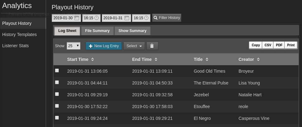 Check your hourly listener statistics to find out which shows are the most popular and provide your advertisers with data on how many listeners they have reached.