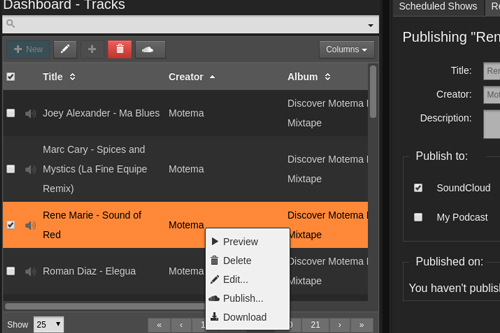 Reach more listeners with a built-in podcast feed for your station. Not only will your listeners be able to catch up through their favorite podcatching apps, but they can also listen on-demand via your Radio Page. This means you can broadcast, podcast, or do both simultaneously. Read more about podcasting with Airtime Pro, and find out why your radio station needs a podcast.